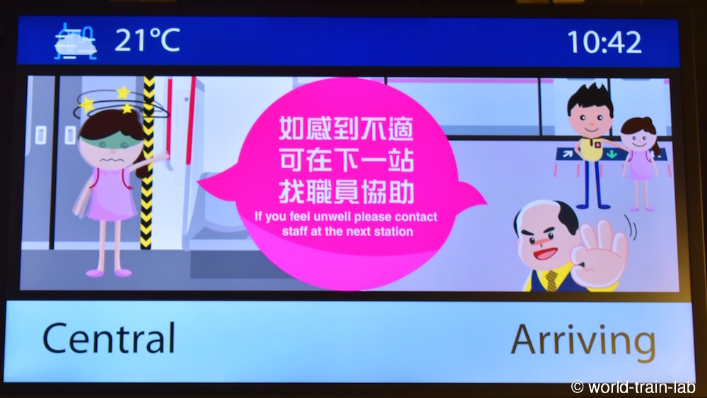 East Rail Lineを除く全線のほぼすべての駅でホームドアが設置されています。 このホームドアには行き先方面、これからの停車駅が記載されているのでこちらも確認することをお勧めします。